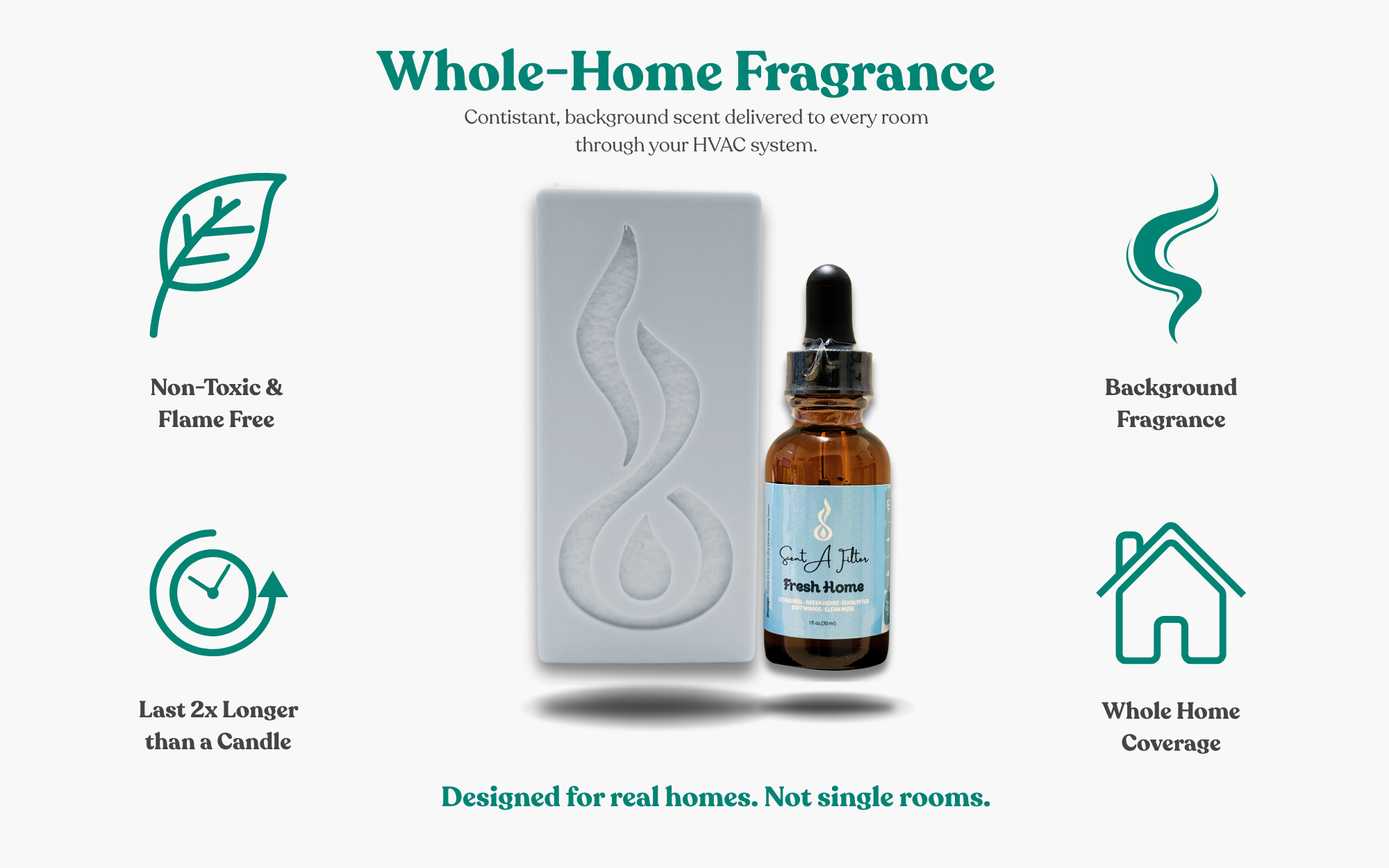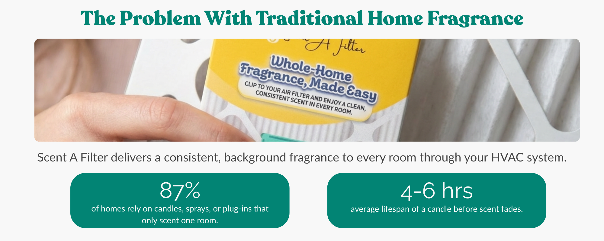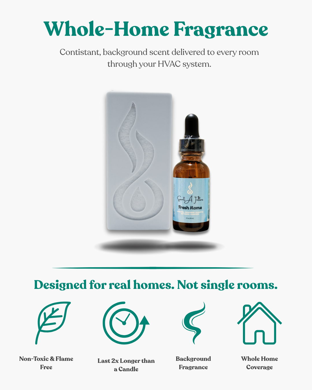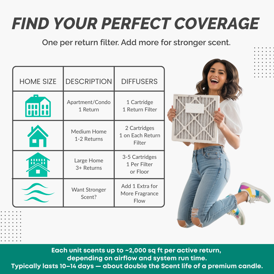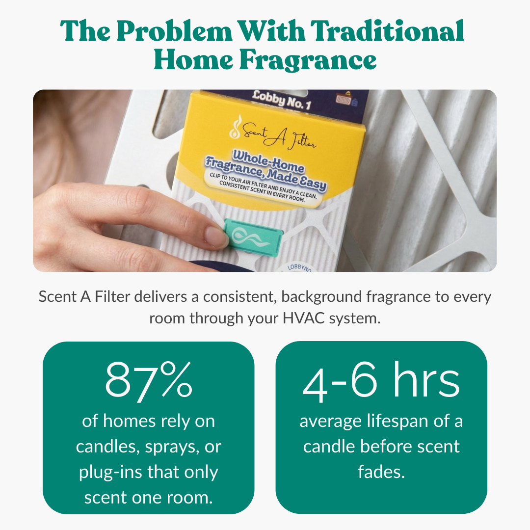 Unlike traditional air fresheners that only scent one area at a time, Scent-A-Filter provides whole-home fragrance with zero effort. There are no flames, no refills, no messy sprays—just clean, even scent in every room.